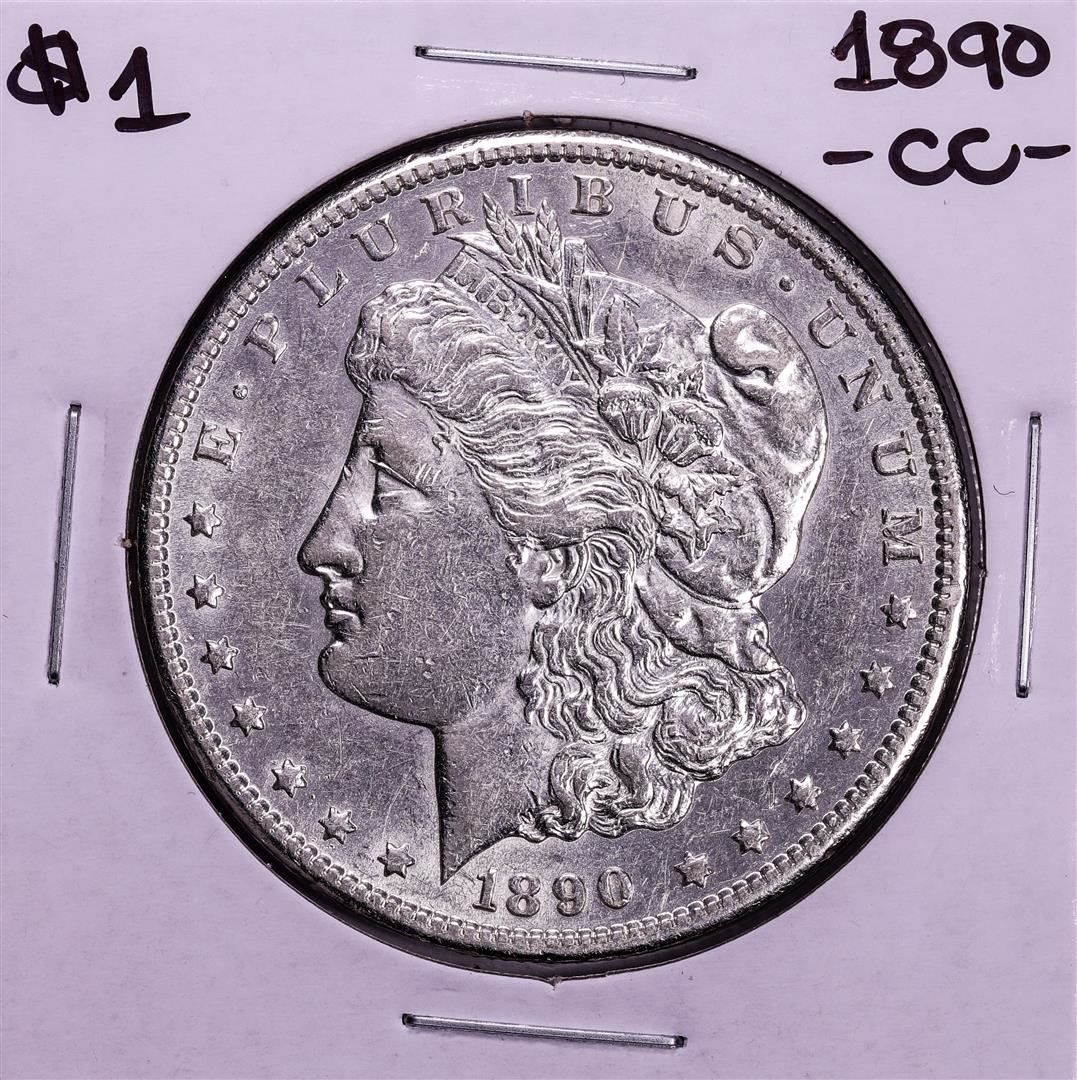 One 1890-CC $1 Morgan Silver Dollar Coin.