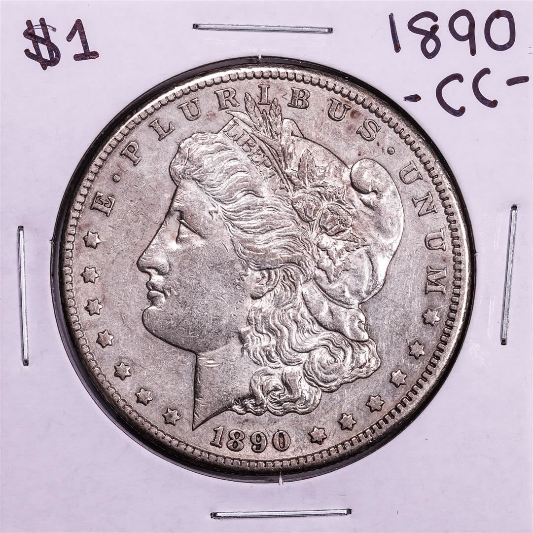 One 1890-CC $1 Morgan Silver Dollar Coin.