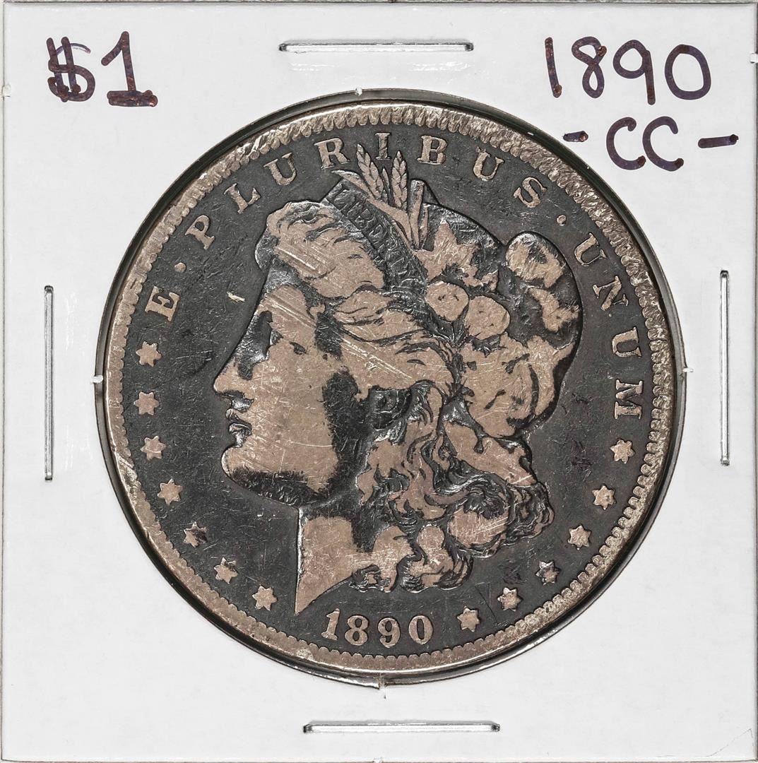 One 1890-CC $1 Morgan Silver Dollar Coin.