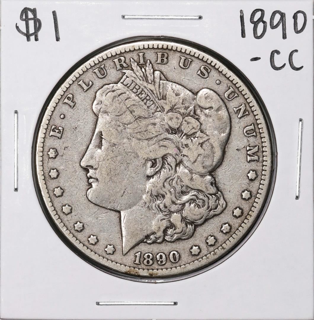 One 1890-CC $1 Morgan Silver Dollar Coin.