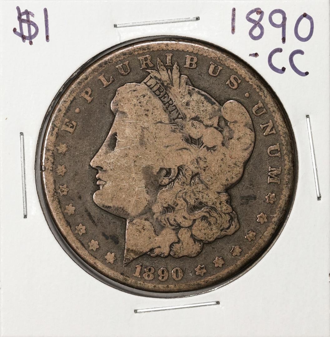 One 1890-CC $1 Morgan Silver Dollar Coin.