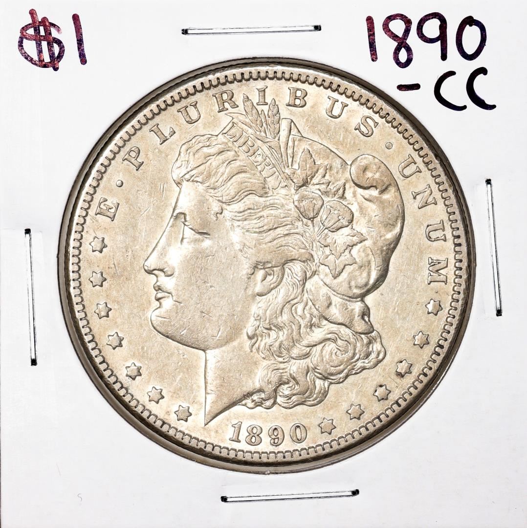 One 1890-CC $1 Morgan Silver Dollar Coin.