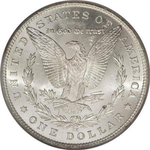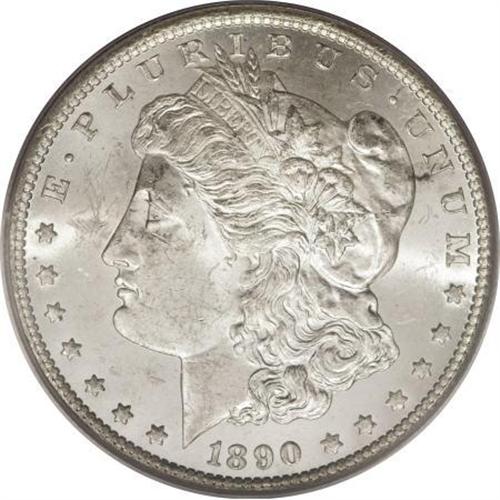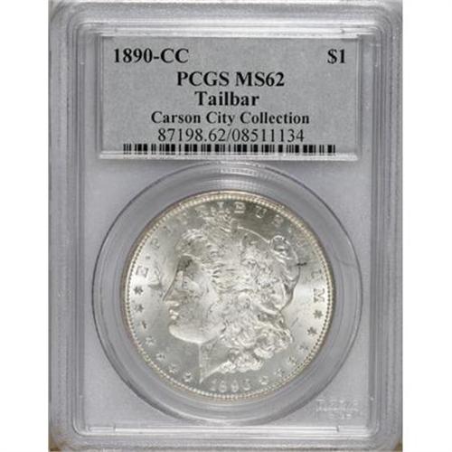 <B>1890-CC $1 Tail Bar MS62 PCGS.</B></I> Ex: Carson City Collection. VAM-4. A Top 100 Variety. A lustrous, crisply struck, and virtually brilliant example of this popular and easily recognized Carson City variety. Wispy grazes on the cheek deny a higher grade, but the reverse is generally well preserved.<BR><BR><b>Shipping:</b> Coins & Currency (<a target="_blank" href="http://www.heritageauctions.com/common/shipping.php">view shipping information</a>)