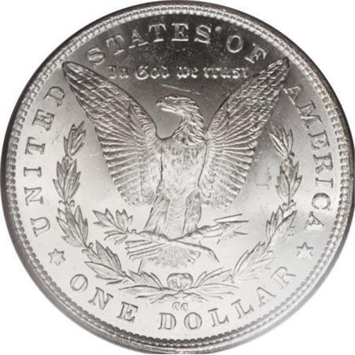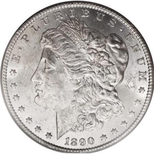 <B>1890-CC $1 Tail Bar MS63 PCGS.</B></I> VAM-4. A Top 100 Variety. A bold, straight line of relief links the eagle's tailfeathers and the lower wreath on this distinctive die variety. The coin offered here displays strong luster and just a hint of ice-blue patina in the fields. Solidly struck with a comparatively clean reverse, though a number of small abrasions on the obverse restrict the grade.<BR><BR><b>Shipping:</b> Coins & Currency (<a target="_blank" href="http://www.heritageauctions.com/common/shipping.php">view shipping information</a>)