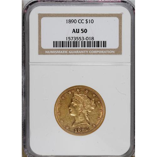 1890-CC $10 AU50 NGC. NGC Census: (11/264). PCGS P