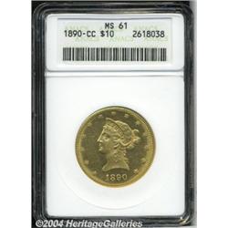 <B>1890-CC<$10> MS61 ANACS.</B></I> A meticulously struck example of this conditionally challenging issue that has a surprising absence of unpleasant contact marks. The satiny cartwheel luster is somewhat more intense on the reverse. While the 1891-CC is commonplace in Mint State, it is not to be confused with the 1890-CC, of which a stingy 17,500 pieces were struck. <BR><BR><B>Important notice:</B> Heritage usually auctions material at the rate of 200-250 lots per hour. On some occasions eBay Live bid software or the Internet may not be able to keep up with the pace of the auction. We recommend placing a realistic absentee bid now as insurance to avoid disappointment. Occasionally the auctioneer may eliminate or reject an eBay Live bid, and the auctioneer may also reopen a lot after the close of the eBay live bidding (usually because we missed an audience bid), and may reject your bid even if it shows you as the winning bidder. By bidding via eBay Live, you agree that Heritage may award the lot to another bidder at its sole discretion under the circumstances described above or any other reasonable circumstances. Since eBay bids are not shown to us until we open the lot on the floor, we treat those bids just like floor bids. In most cases the floor responds before the eBay bid is presented to us, due to Internet lag time, so for consistency we have made it a policy that floor bids are always considered first over tie eBay live bids. Also please note that all Heritage lots purchased through eBay Live carry a 20% Buyer's Premium. Please make sure you read the Terms and Conditions before you bid. </span></font></tr></table></td></tr></table>