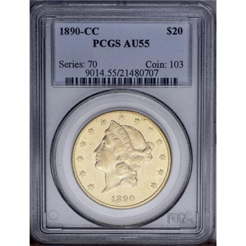 1890-CC $20 AU55 PCGS. Lustrous and well struck, with 1890-CC[$20] AU55 PCGS.