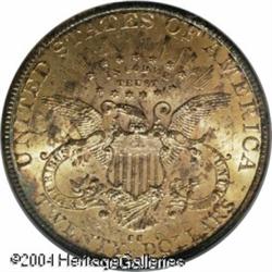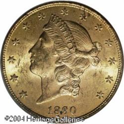 1890-CC $20 AU50 PCGS. The current Coin Dealer Newsl <B>1890-CC $20 MS60 PCGS.</B></I> Variety 1-A, the only known dies. The orange-gold surfaces display an original look with appreciably bold striking detail. Both sides are a little bit hazy with myriad abrasions that account for the MS60 designation. There are a few moderate cuts on Liberty's cheek. The 1890-CC (91,209 pieces produced) is a popular issue among CC-mint type collectors, although with only 200 pieces believed extant in Mint State, it is more difficult to locate at that level than the 1875-CC. Population: 41 in 60, 72 finer (11/04). <BR><BR><B>Important notice:</B> Heritage usually auctions material at the rate of 200-250 lots per hour. On some occasions eBay Live bid software or the Internet may not be able to keep up with the pace of the auction. We recommend placing a realistic absentee bid now as insurance to avoid disappointment. Occasionally the auctioneer may eliminate or reject an eBay Live bid, and the auctioneer may also reopen a lot after the close of the eBay live bidding (usually because we missed an audience bid), and may reject your bid even if it shows you as the winning bidder. By bidding via eBay Live, you agree that Heritage may award the lot to another bidder at its sole discretion under the circumstances described above or any other reasonable circumstances. Since eBay bids are not shown to us until we open the lot on the floor, we treat those bids just like floor bids. In most cases the floor responds before the eBay bid is presented to us, due to Internet lag time, so for consistency we have made it a policy that floor bids are always considered first over tie eBay live bids. Also please note that all Heritage lots purchased through eBay Live carry a 20% Buyer's Premium. Please make sure you read the Terms and Conditions before you bid. This lot is being auctioned in conjunction with a live floor auction by Heritage Galleries & Auctioneers. All final auction and invoice information will be supplied by Heritage Galleries & Auctioneers, and all other information should be considered preliminary. Lot:9774