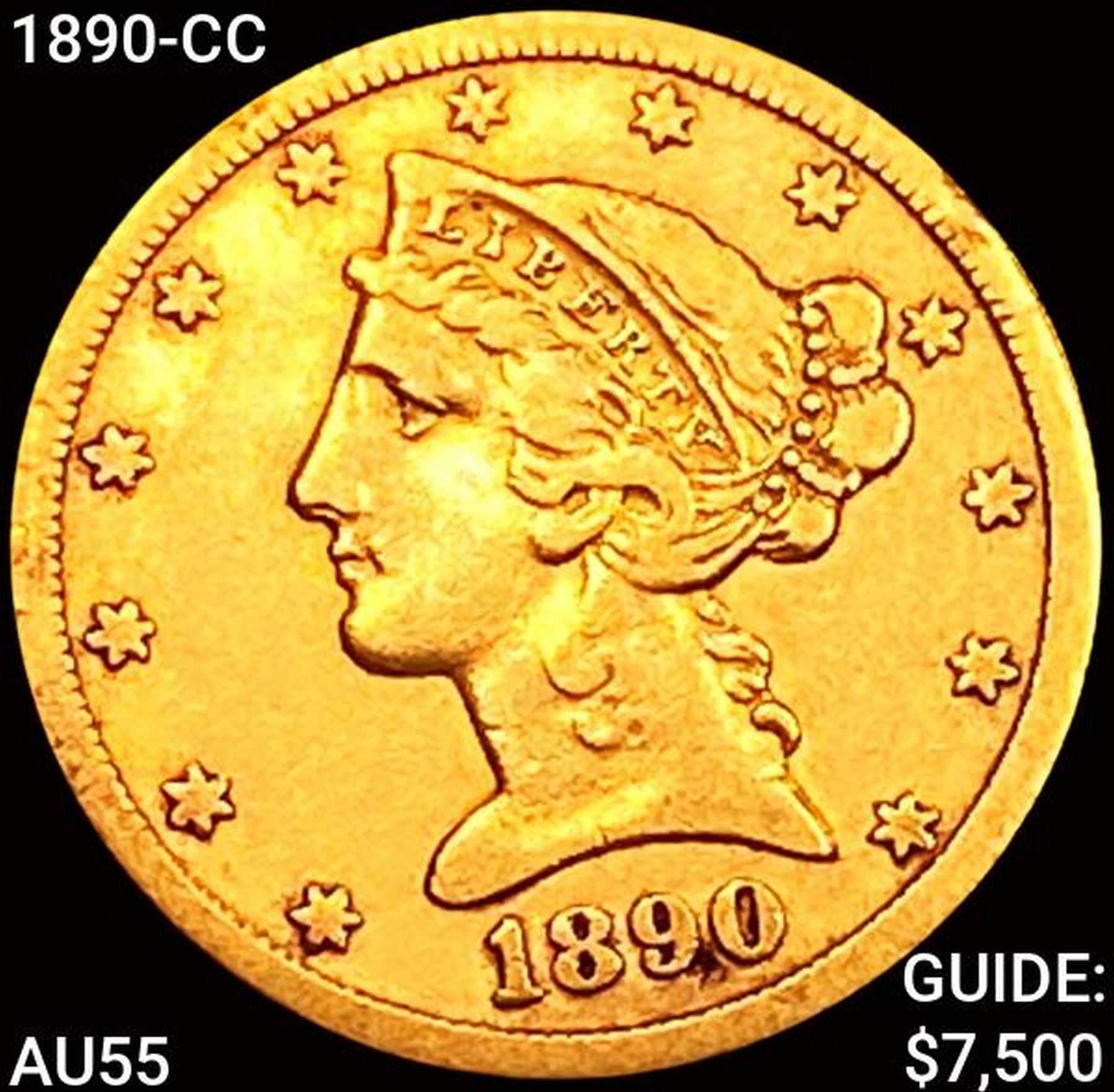 1890-CC $5 Gold Half Eagle HIGH GRADE