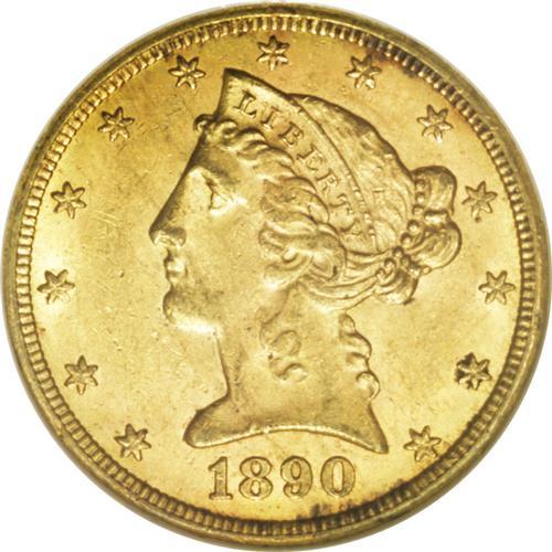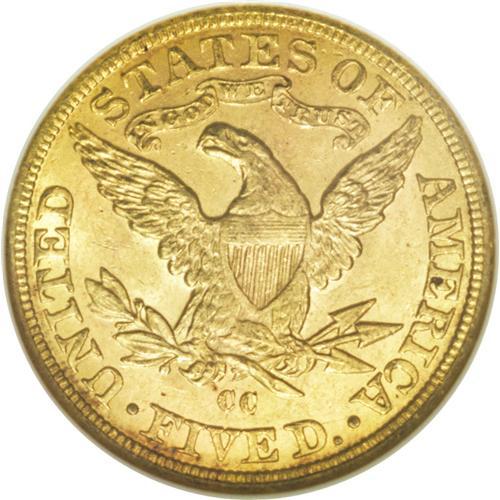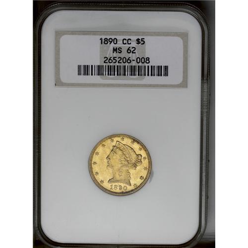 1890-CC $5 MS62 NGC. Well struck and satiny, with an e
