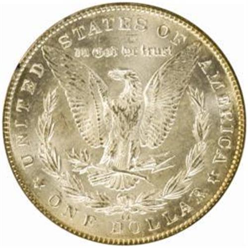 <style type="text/css"> body, td, th { font-family: Arial, Helvetica, sans-serif; font-size: 12px; color: #482424; margin: 0px; padding: 0px; } #header { background-image: url(http://www.bowersandmerena.com/ebay/images/template_v3_01.gif); clear: both; background-color: #590303; border-top-width: 2px; border-top-style: solid; border-top-color: #B38C4F;}#header #header_wrapper { height: 75px; clear: both; width: 800px; margin-right: auto; margin-left: auto; background-image: url(http://www.bowersandmerena.com/ebay/images/template_v3_03.gif); background-repeat: no-repeat; background-position: right; color: #F3EDCC;}#header #header_wrapper #header_logo { float: left; height: 75px; width: 444px; background-image: url(http://www.bowersandmerena.com/ebay/images/template_v3_02.gif); background-repeat: no-repeat; font-size: 10px; text-transform: capitalize; color: #B38C4F;}#header #header_wrapper #header_right { float: left; height: 75px; width: 356px; text-align: right;}#header #header_wrapper #header_right #headerLoginBtn { margin-bottom: 30px;}#header #header_wrapper #header_right input#txtSearch { color: #B49056; border: 1px solid #B49056; width: 175px; padding-top: 3px; padding-right: 3px; padding-bottom: 4px; padding-left: 3px;}#nav { height: 37px; background-image: url(http://www.bowersandmerena.com/ebay/images/template_v3_05.gif); clear: both;}#nav #nav_wrapper { height: 35px; width: 800px; margin-right: auto; margin-left: auto; border-left-width: 1px; border-left-style: solid; border-left-color: #B38C4F;}#nav #nav_wrapper a { padding-right: 15px; padding-left: 15px; border-right-width: 1px; border-right-style: solid; border-right-color: #B38C4F; height: 25px; padding-top: 10px; display: block; float: left; text-decoration: none; font-weight: bold; color: #5D0303;}#nav #nav_wrapper a:hover { color: #B38C4F;}#nav #nav_wrapper #search { float: right; padding-top: 7px;}#nav #nav_wrapper #search #txtSearch { font-family: Arial, Helvetica, sans-serif; font-size: 10px; text-transform: uppercase; color: #D2AE75; border: 1px solid #B38C4F; padding: 3px;}#content_bgd { background-image: url(http://www.bowersandmerena.com/ebay/images/template_v3_09.gif); background-repeat: repeat-y; background-position: center; padding-top: 15px; padding-bottom: 15px; background-color: #FBFBDB;}#content_wrapper { clear: both; height: auto; width: 800px; margin-right: auto; margin-left: auto;}.LotDetailWhite{ line-height:normal; font-size:13px; font-family: arial,helvetica,sans-serif; color: White; font-weight: bold;}.LotDetailInformation{ line-height:normal; font-size: 13px; font-family: arial,helvetica,sans-serif;}.LotDetailMessage{ line-height:normal; font-size: 13px; font-family: arial,helvetica,sans-serif; color: red;}}tr.HeaderAuctionTitle td { color: #000000; font-weight: bold; padding: 2px; background-image: url(http://www.bowersandmerena.com/ebay/images/template_v3_05.gif); background-repeat: repeat-x; border-bottom-width: 1px; border-bottom-style: solid; border-bottom-color: #B38C4F;}table.AuctionSummary a, table.AuctionSummary a:link, table.AuctionSummary a:visited { color: #0000FF; text-decoration: none;}}td.tableHeaderLeft { border-left-width: 1px; border-left-style: solid; border-left-color: #B38C4F;}td.tableHeaderRight { border-right-width: 1px; border-right-style: solid; border-right-color: #B38C4F;}td.tableCellMiddle { border-left-width: 1px; border-left-style: solid; border-left-color: #B38C4F; border-right-width: 1px; border-right-style: solid; border-right-color: #B38C4F; padding: 5px;}tr.footer td { border-top-width: 1px; border-top-style: solid; border-top-color: #B38C4F;}</style></head><body><div id="header"> <div id="header_wrapper"> <div id="header_logo"> </div> <div id="header_right"> </div> </div></div><div id="nav"> <div id="nav_wrapper"> <a href="http://www.bowersandmerena.com">Our eBayLive Auctions</a> <a href="#PaymentInfo">Payment Information</a> <a href="#ShippingInfo">Shipping Information</a> <a href="#About">About Bowers and Merena</a> </div></div><div id="content_bgd"> <div id="content_wrapper"> <table width="100%" border="0" cellpadding="5" cellspacing="0" class="AuctionSummary"> <tbody> <tr class="HeaderAuctionTitle" style="height: 25px;"> <td align="left" class="tableHeaderLeft" > </td> <td align="center" class="tableHeaderRight"> <span style="font-size: large;">Lot #799. 1890-CC GSA Morgan Silver Dollar. MS-62 (Uncertified).</span> </td> </tr> <tr> <td colspan="3" class="tableCellMiddle"> The 1890-CC is the fourth-rarest Carson City Mint Morgan Dollar distributed through the General Services Administration. During seven sales conducted by that federal agency from 1972 to 1980, only 3,949 examples of the 1890-CC were disbursed to the public. That total represents just 0.17% of the original mintage for this issue. By way of comparison, more than half of the original mintage for issues such as the 1882-CC, 1883-CC, 1884-CC and 1885-CC were distributed by the GSA at the same time.This is a boldly struck example with full mint frost and virtually brilliant surfaces. Scattered abrasions are commensurate with the grade, and a few moderate-size ones are present on the obverse. The original box is not included.