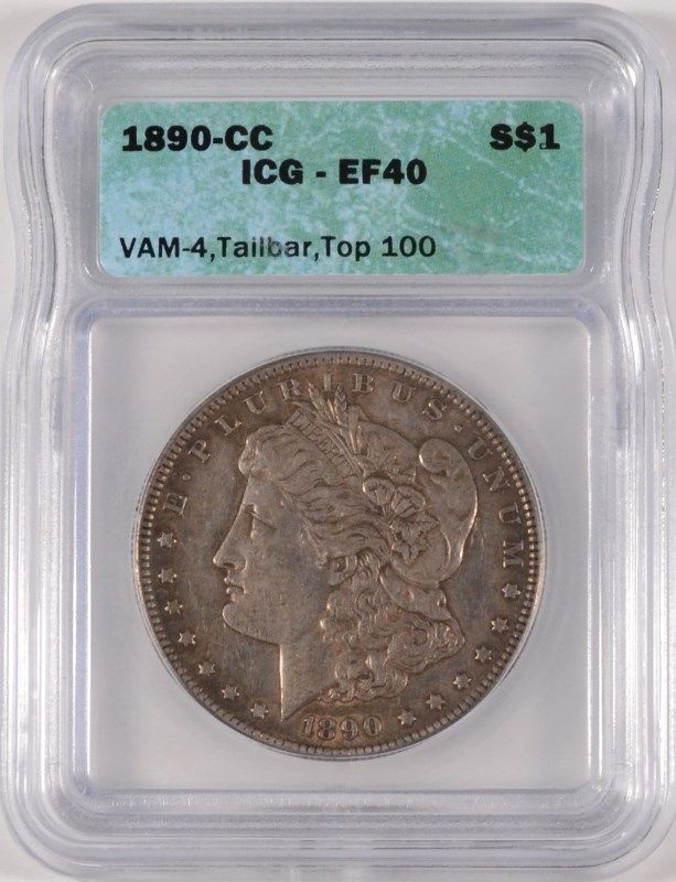 1890-CC MORGAN DOLLAR ICG EF-40, VAM-4, TAILBAR, TOP 100