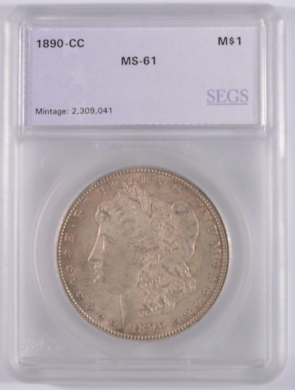 1890-CC MORGAN SILVER DOLLAR, SEGS MS-61 KEY COIN!
