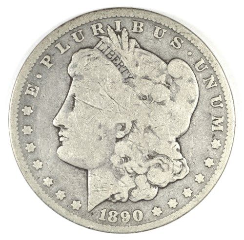 1890-CC MORGAN SILVER DOLLAR, TAILBAR VARIETY, VG