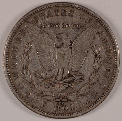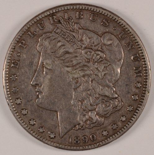 1890-CC MORGAN SILVER DOLLAR, XF-45 100% ORIGINAL