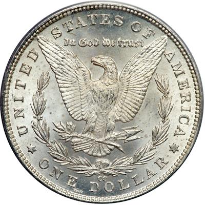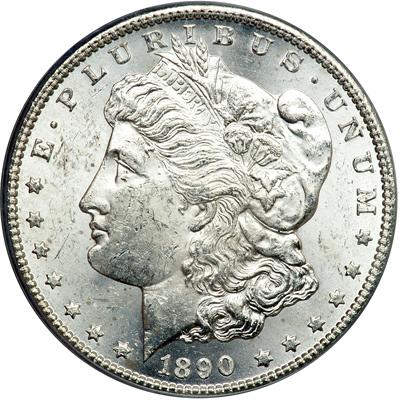 1890-CC Morgan Dollar. PCGS graded MS-62. Frosty. A well struck example. No toning masks the vibrant luster (PCGS # 7198) .