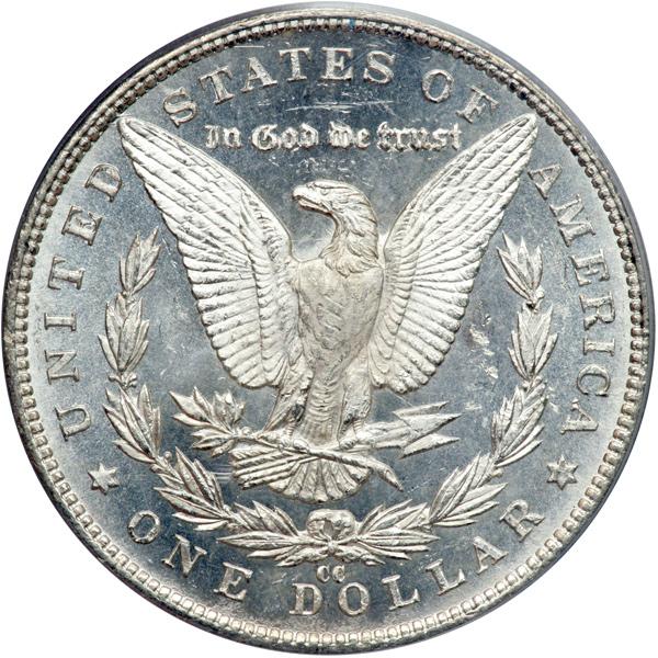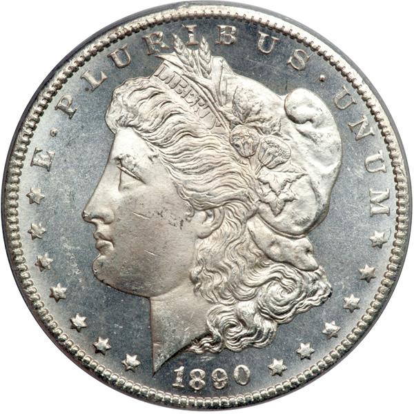 1890-CC Morgan Dollar. PCGS graded MS-64 Prooflike. Fully white. Well struck. An exciting example of a relatively plentiful date when frosty, this much scarcer untoned prooflike coin displays sparkly luster. Pop 81; 14 finer in 65PL (PCGS # 7199) .