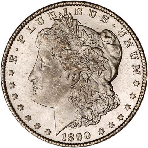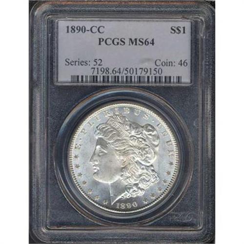 <b>1890-CC Morgan Dollar. PCGS graded MS64.</b> Satiny white. A lustrous, indeed, a frosty coin that has icy color shooting beams of white, plus a very acceptable strike <b>(PCGS # 7198)</b> <i>