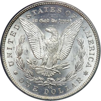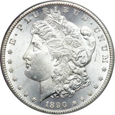 1890-CC Morgan Dollar. PCGS graded MS-64. Milky white surfaces swirl with luster (PCGS # 7198).
