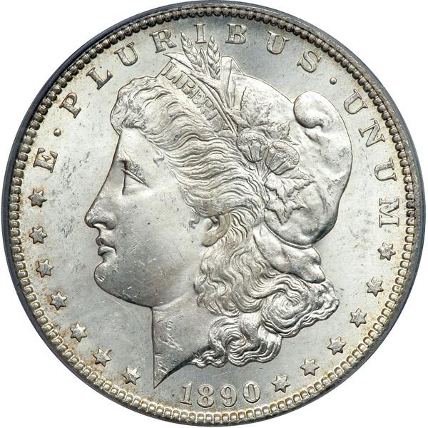 1890-CC Morgan Dollar. PCGS graded MS-64. Mostly untoned, with near-gem level luster throughout. Popular (and slightly more elusive) CC-mint issue from the decade of the 1890s (PCGS # 7198) .
