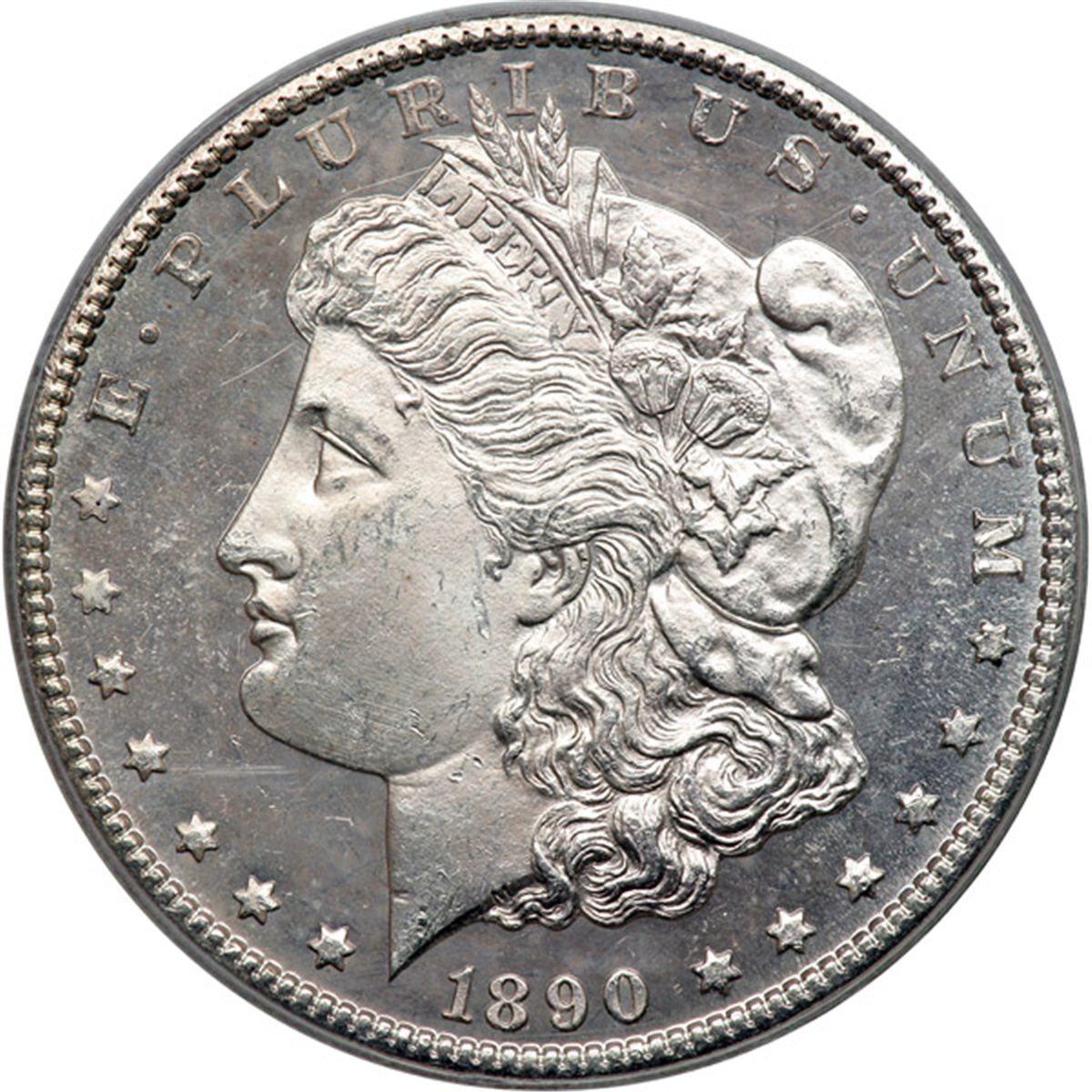 1890-CC. PCGS graded MS-63 Deep Mirror Prooflike PQ. CAC Approved. Well struck and mostly white. Deep prooflikes are very scarce on the '90-CC issue, unlike some earlier CC-mint dates in the series from the 1880s (PCGS # 97199) .