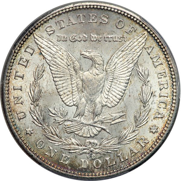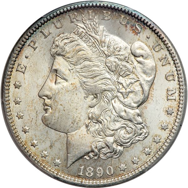 1890-CC Morgan Dollar. PCGS graded MS-64. A hint of light tone on this extra frosty example. The 1890s were sometimes referred to as the "Mauve Decade," because William Henry Perkin's aniline dye allowed the widespread use of that colour in fashion, and also as the "Gay Nineties", under the then-current usage of the word "gay" which referred simply to merriment and frivolity, without the connotations in present-day usage. The phrase, "The Gay Nineties," was not coined until 1926 (PCGS # 7198) .