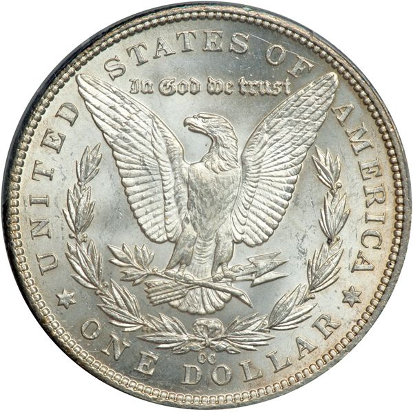 1890-CC Morgan Dollar. PCGS graded MS-63. Lightly toned. Always high on the want lists of Silver Dollar buyers (PCGS # 7198) .