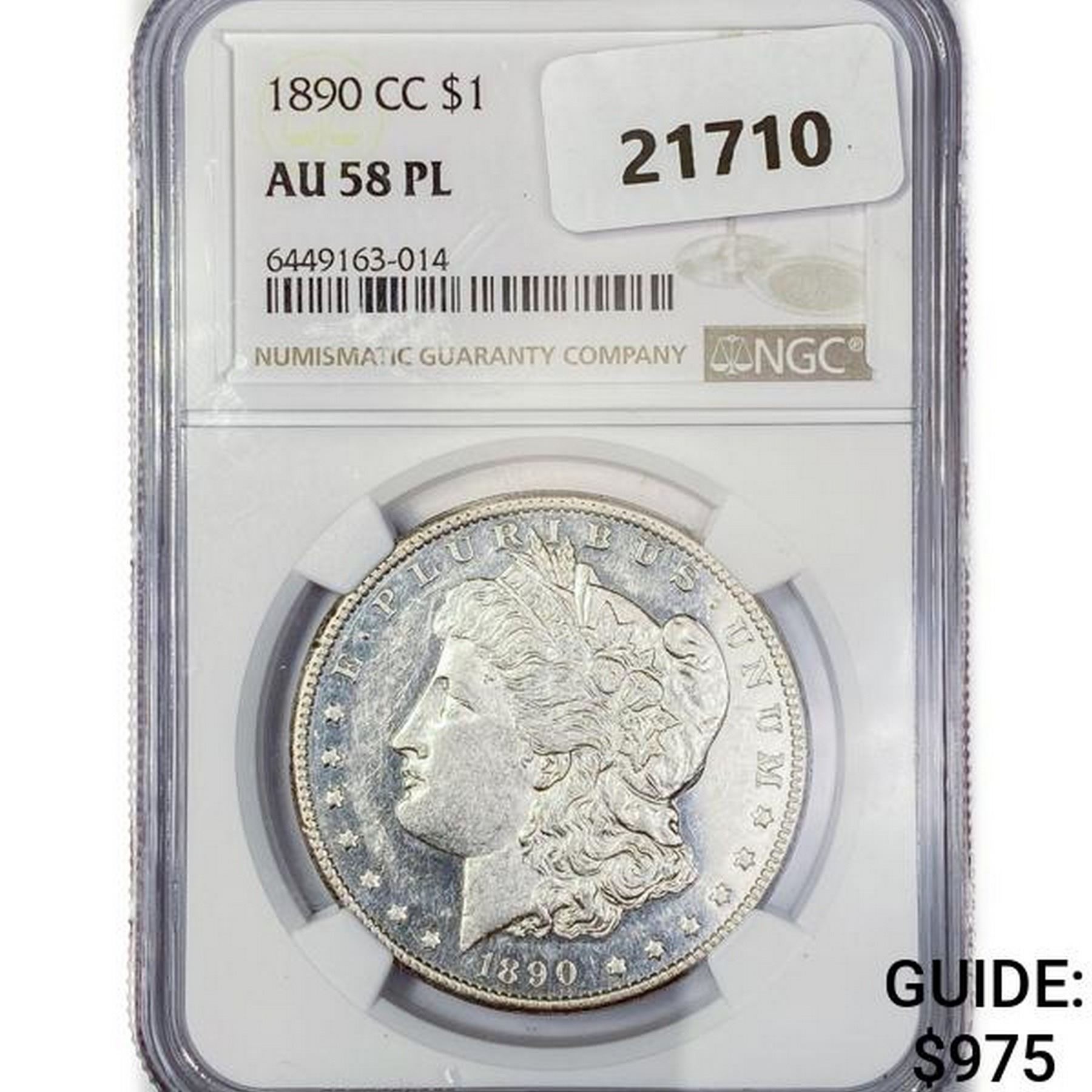 1890-CC Morgan Silver Dollar NGC AU58 PL