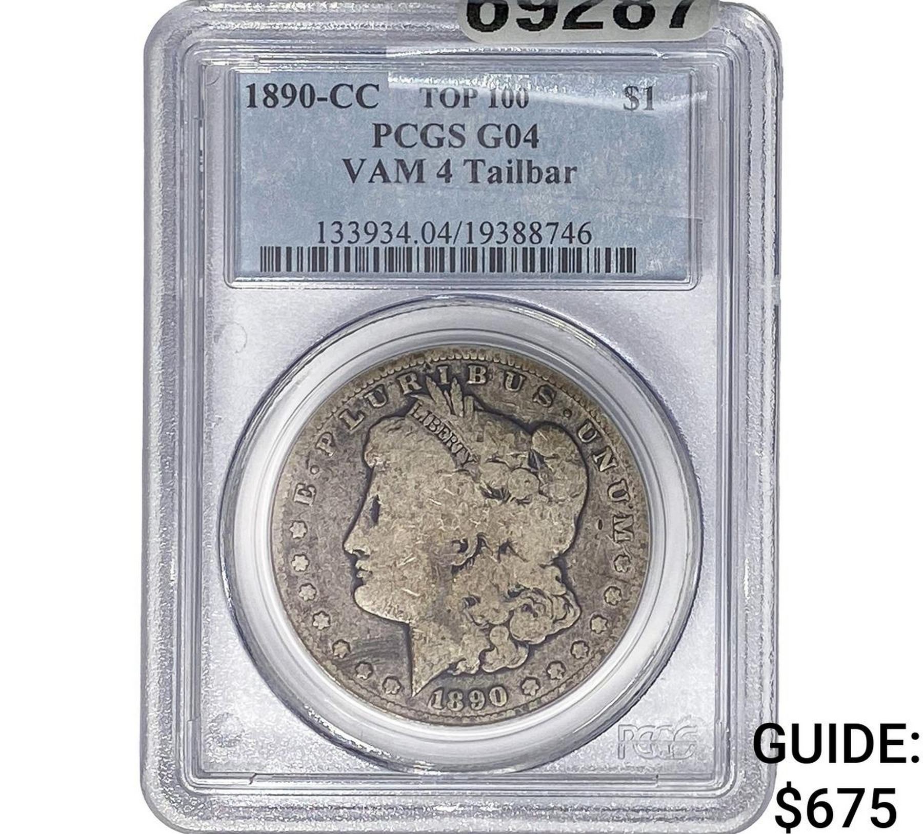 1890-CC Morgan Silver Dollar PCGS G04 VAM4 Tailbar