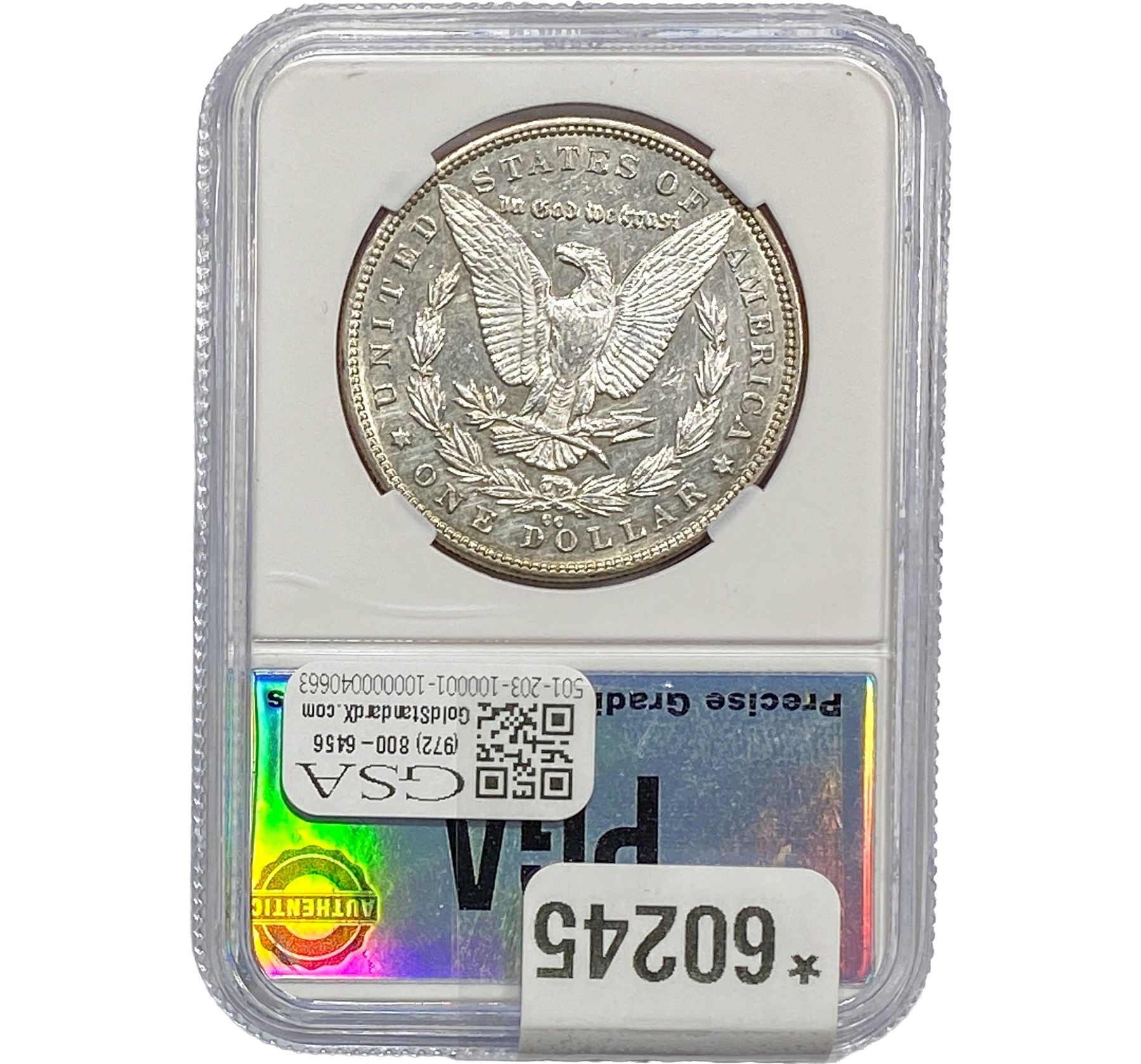 e. Coins sold referencing a third-party grading service are sold “AS IS” without any express or implied warranty, except for a guarantee by GSA that they are genuine. Removal or alteration of the holder, voids all of Bidder’s claims concerning that Product. Certain warranties may be available from the grading services and Bidders are referred to them for further details: Numismatic Guaranty Corporation (NGC), PO Box 4776, Sarasota, FL 34230, www.ngccoin.com/services/writtenguarantee.asp; Professional Coin Grading Services (PCGS), PO Box 9458, Newport Beach, CA 92658, www.pcgs.com/guarantee.html; ANACS, 6555 S. Kenton St., Ste. 303, Englewood, CO 80111; and Independent Coin Grading Co. (ICG), 7901 East Bellview, Ave., Suite 50, Englewood, CO 80111.