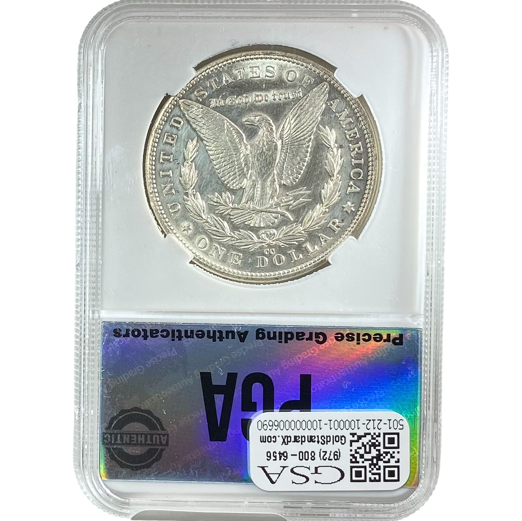 e. Coins sold referencing a third-party grading service are sold “AS IS” without any express or implied warranty, except for a guarantee by GSA that they are genuine. Removal or alteration of the holder, voids all of Bidder’s claims concerning that Product. Certain warranties may be available from the grading services and Bidders are referred to them for further details: Numismatic Guaranty Corporation (NGC), PO Box 4776, Sarasota, FL 34230, www.ngccoin.com/services/writtenguarantee.asp; Professional Coin Grading Services (PCGS), PO Box 9458, Newport Beach, CA 92658, www.pcgs.com/guarantee.html; ANACS, 6555 S. Kenton St., Ste. 303, Englewood, CO 80111; and Independent Coin Grading Co. (ICG), 7901 East Bellview, Ave., Suite 50, Englewood, CO 80111.