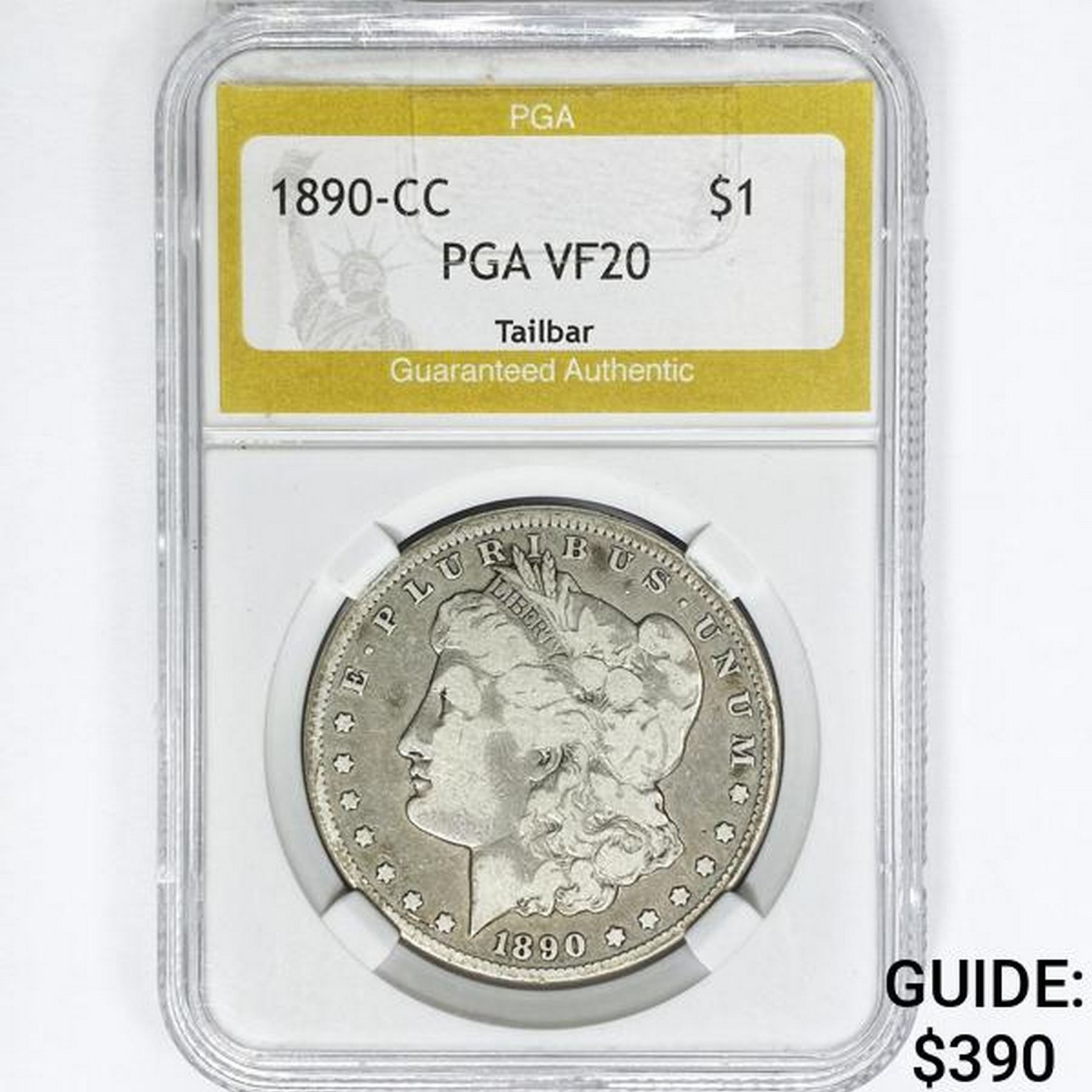 1890-CC Morgan Silver Dollar PGA VF20 Tailbar