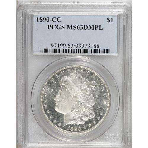 <B>1890-CC S$1 MS63 Deep Mirror Prooflike PCGS.</B></I> VAM-3. The 90 in the date is repunched southwest. This well struck and untoned piece is clean for the designated grade, and the flashy mirrors confirm the eye appeal.<BR><BR><b>Shipping:</b> Coins & Currency (<a target="_blank" href="http://www.heritageauctions.com/common/shipping.php">view shipping information</a>)