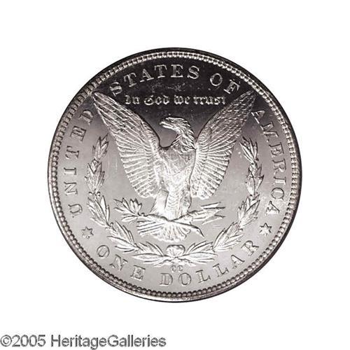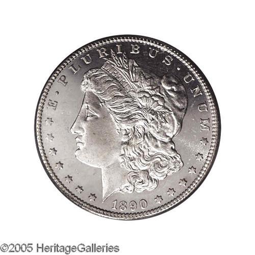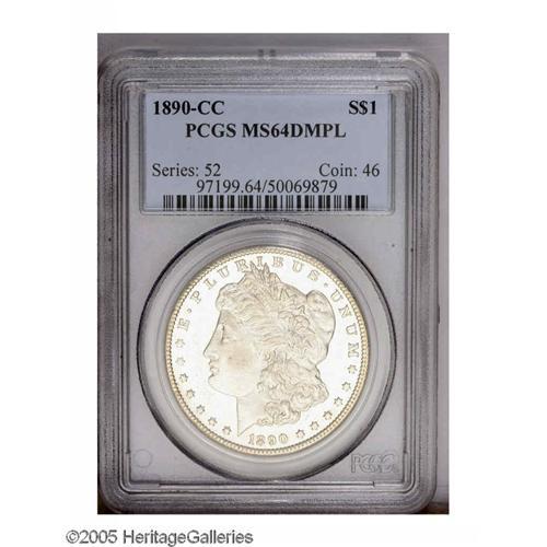 <B>1890-CC<S$1> MS64 Deep Mirror Prooflike PCGS.</B></I> A very impressive, deeply mirrored example of this popular Carson City issue. The devices display snow-white mint luster that establishes a stark cameo contrast on each side. This piece is at the upper level of the MS64 grade range, and undoubtedly many will think it deserves a full Gem designation. Population: 168 in 64, 19 finer (11/05).