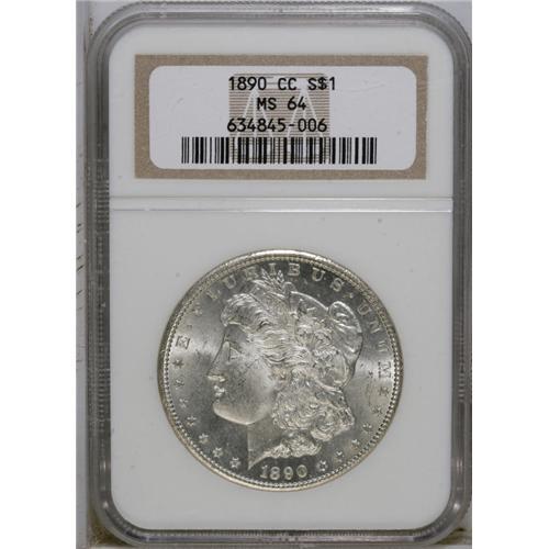 <B>1890-CC S$1 MS64 NGC.</B></I> Choice with a quality strike overall. The luster is strong and the overall eye appeal is pleasing, though light marks are present on the cheek.<BR><BR><b>Shipping:</b> Coin/Currency (<a target="_blank" href="http://www.heritageauctions.com/common/shipping.php">view shipping information</a>)