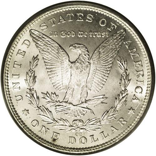 <B>1890-CC<img border='0' src='http://www.heritagecoins.com/images/star.gif' width=10 height=10>$1> MS64 PCGS.</B></I> A white, untoned example of this date, with uniformly brilliant surfaces and a strong, cartwheel effect on both sides. Well defined for this often weak date with no mentionable marks for the grade.