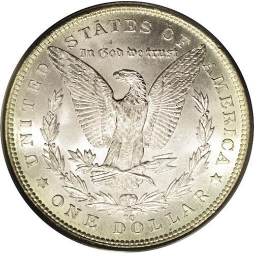<B>1890-CC<img border='0' src='http://www.heritagecoins.com/images/star.gif' width=10 height=10>$1> MS64 PCGS.</B></I> Boldly defined, with a pleasing satiny-white appearance, radiant luster, and few appreciable surface marks. The 1890-CC is an issue that is far less obtainable (and less affordable) once the Gem threshold is reached. The reverse appears choice for the grade.