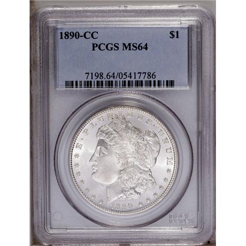 <B>1890-CC<img border='0' src='http://www.heritagecoins.com/images/star.gif' width=10 height=10>$1> MS64 PCGS.</B></I> Dazzling luster is exuded from silver-gray surfaces that are imbued with whispers of light tan, and the design elements are well impressed. Minute marks on the cheek and neck and in the left (facing) obverse field define the grade. <BR><BR><B>Important notice:</B> Heritage usually auctions material at the rate of 200-250 lots per hour. On some occasions eBay Live bid software or the Internet may not be able to keep up with the pace of the auction. We recommend placing a realistic absentee bid now as insurance to avoid disappointment. Occasionally the auctioneer may eliminate or reject an eBay Live bid, and the auctioneer may also reopen a lot after the close of the eBay live bidding (usually because we missed an audience bid), and may reject your bid even if it shows you as the winning bidder. By bidding via eBay Live, you agree that Heritage may award the lot to another bidder at its sole discretion under the circumstances described above or any other reasonable circumstances. Since eBay bids are not shown to us until we open the lot on the floor, we treat those bids just like floor bids. In most cases the floor responds before the eBay bid is presented to us, due to Internet lag time, so for consistency we have made it a policy that floor bids are always considered first over tie eBay live bids. Also please note that all Heritage lots purchased through eBay Live carry a 20% Buyer's Premium. Please make sure you read the Terms and Conditions before you bid. This lot is being auctioned in conjunction with a live floor auction by Heritage Galleries & Auctioneers. All final auction and invoice information will be supplied by Heritage Galleries & Auctioneers, and all other information should be considered preliminary. Lot:3540 <BR><BR><B>Winning Notification and Billing:</B> After the FINAL session in this auction is complete, Heritage will send e-mail and snail mail invoices. This process normally takes several days. All final auction and invoice information will be supplied by Heritage Galleries & Auctioneers, and all other information should be considered preliminary. <BR><BR>This auction will be conducted on a live auction floor and over the Internet through eBay Live. If you choose to place an absentee bid, please take a moment to <font color='#0000ff'><u><a href='http://pages.ebay.com/liveauctions/help/before/laabsentee.html'>learn how eBay Live absentee bidding works</a></u></font><font color='#000000'>