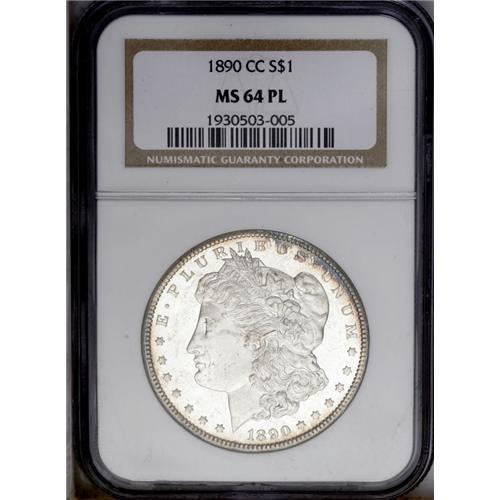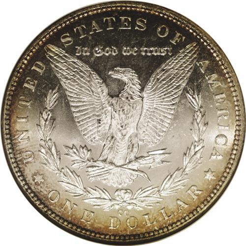<B>1890-CC<img border='0' src='http://www.heritagecoins.com/images/star.gif' width=10 height=10>$1> MS64 Prooflike NGC.</B></I> This high end CC is scarce in proof-like condition. This piece has a gentle halo of peripheral russet and electric-blue toning that highlights the reflective fields with mildly frosted, sharply struck devices. The obverse has a few marks that keep it from the Gem category while the reverse is virtually mark free. Census: 45 in 64, 2 finer (3/06). <BR><BR><B>Important notice:</B> Heritage usually auctions material at the rate of 200-250 lots per hour. On some occasions eBay Live bid software or the Internet may not be able to keep up with the pace of the auction. We recommend placing a realistic absentee bid now as insurance to avoid disappointment. Occasionally the auctioneer may eliminate or reject an eBay Live bid, and the auctioneer may also reopen a lot after the close of the eBay live bidding (usually because we missed an audience bid), and may reject your bid even if it shows you as the winning bidder. By bidding via eBay Live, you agree that Heritage may award the lot to another bidder at its sole discretion under the circumstances described above or any other reasonable circumstances. Since eBay bids are not shown to us until we open the lot on the floor, we treat those bids just like floor bids. In most cases the floor responds before the eBay bid is presented to us, due to Internet lag time, so for consistency we have made it a policy that floor bids are always considered first over tie eBay live bids. Also please note that all Heritage lots purchased through eBay Live carry a 20% Buyer's Premium. Please make sure you read the Terms and Conditions before you bid. This lot is being auctioned in conjunction with a live floor auction by Heritage Galleries & Auctioneers. All final auction and invoice information will be supplied by Heritage Galleries & Auctioneers, and all other information should be considered preliminary. Lot:3547 <BR><BR><B>Winning Notification and Billing:</B> After the FINAL session in this auction is complete, Heritage will send e-mail and snail mail invoices. This process normally takes several days. All final auction and invoice information will be supplied by Heritage Galleries & Auctioneers, and all other information should be considered preliminary. <BR><BR>This auction will be conducted on a live auction floor and over the Internet through eBay Live. If you choose to place an absentee bid, please take a moment to <font color='#0000ff'><u><a href='http://pages.ebay.com/liveauctions/help/before/laabsentee.html'>learn how eBay Live absentee bidding works</a></u></font><font color='#000000'>