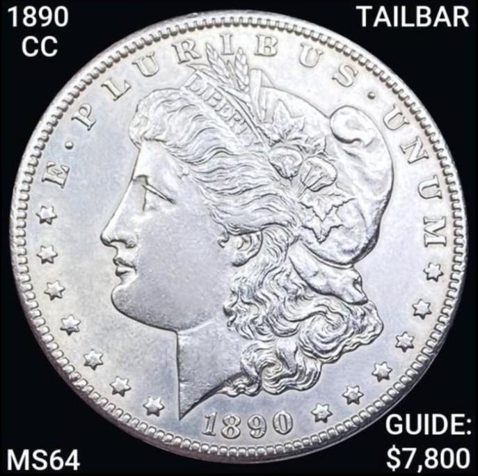 1890-CC Tailbar Morgan Silver Dollar CHOICE BU