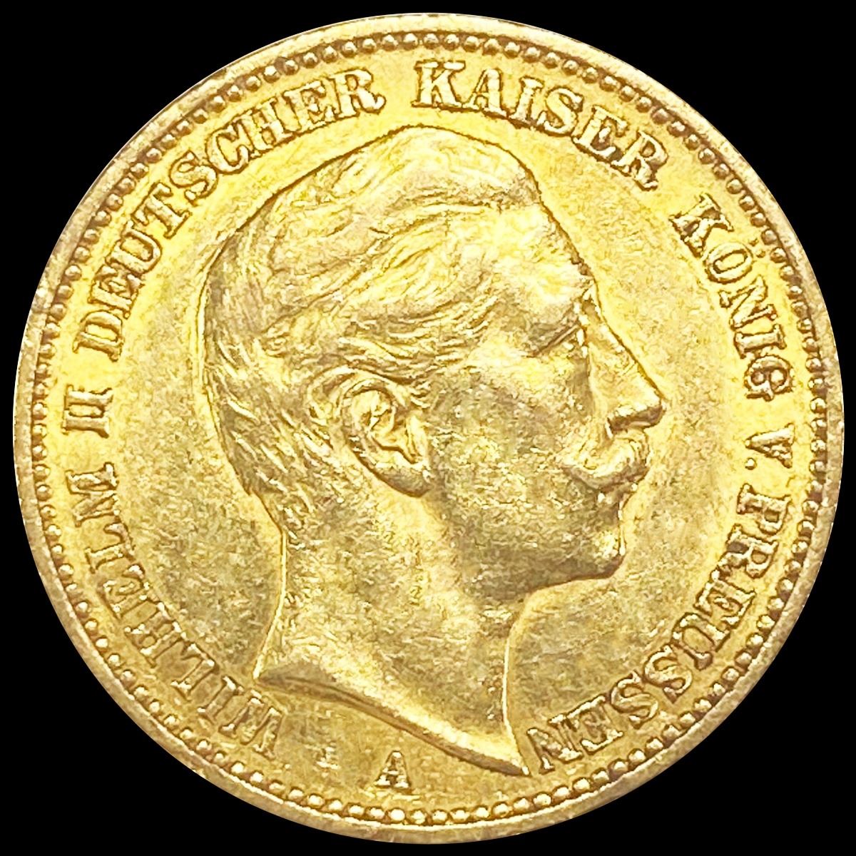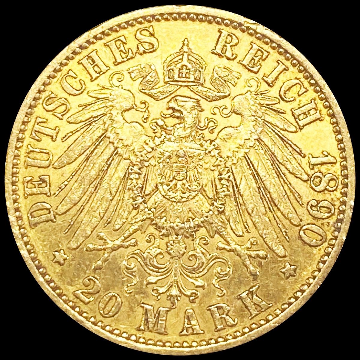 1890 German Prussia Gold 20 Mark UNCIRCULATED
