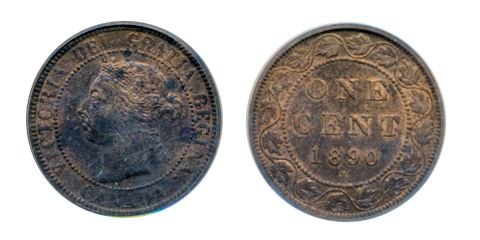1890-H. PCGS graded Mint State-62. Red-Brown. 25% red luster.