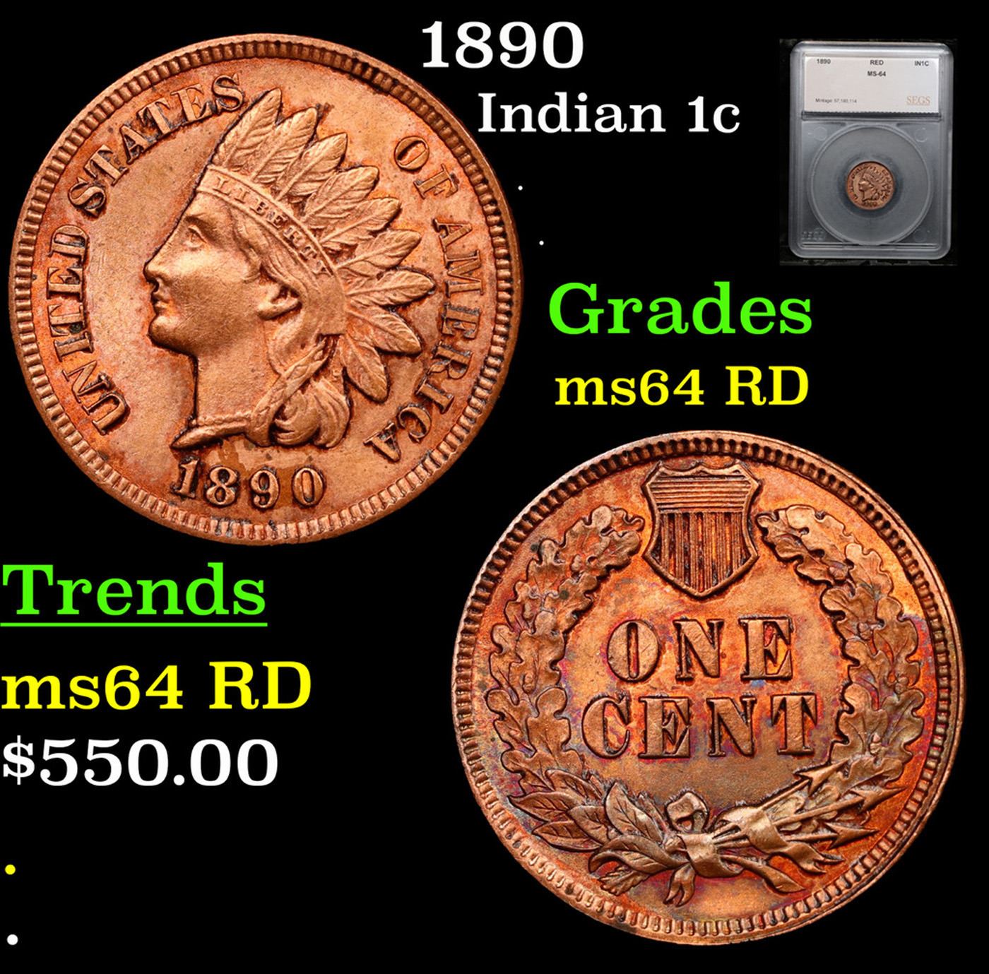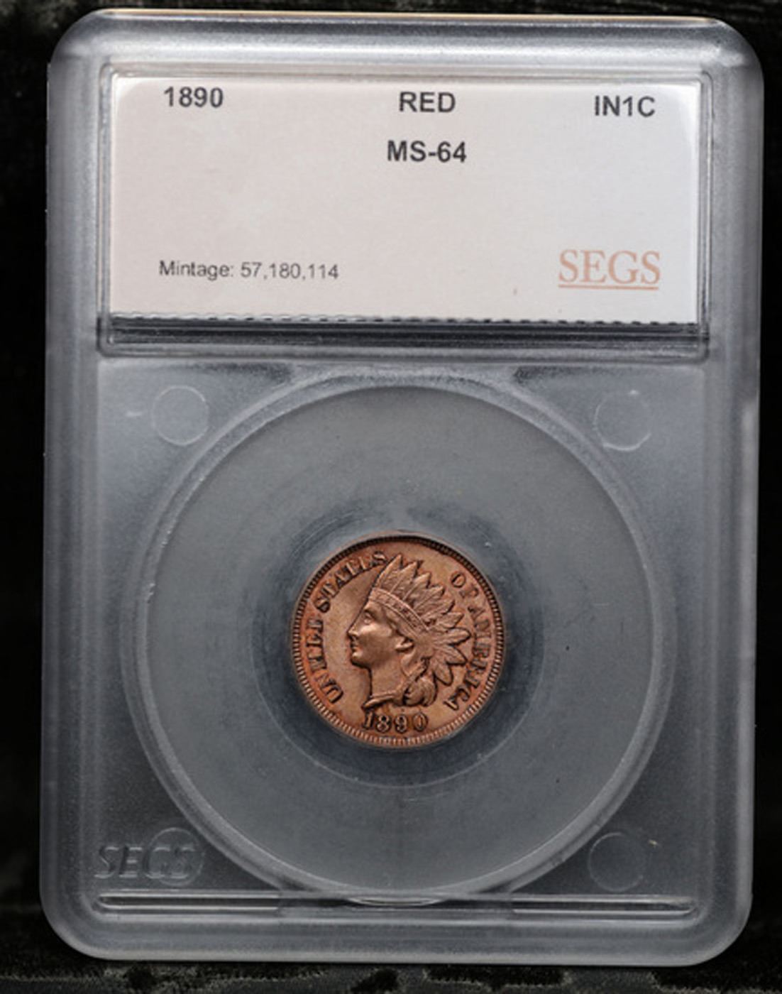 1890 Indian Cent 1c Graded ms64 RD By SEGS. A Corey's Pick, Bid to Win Coin