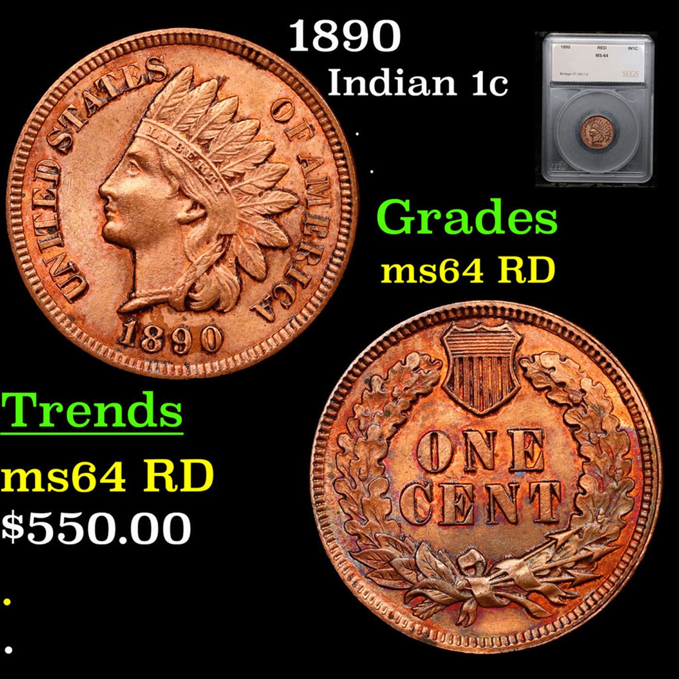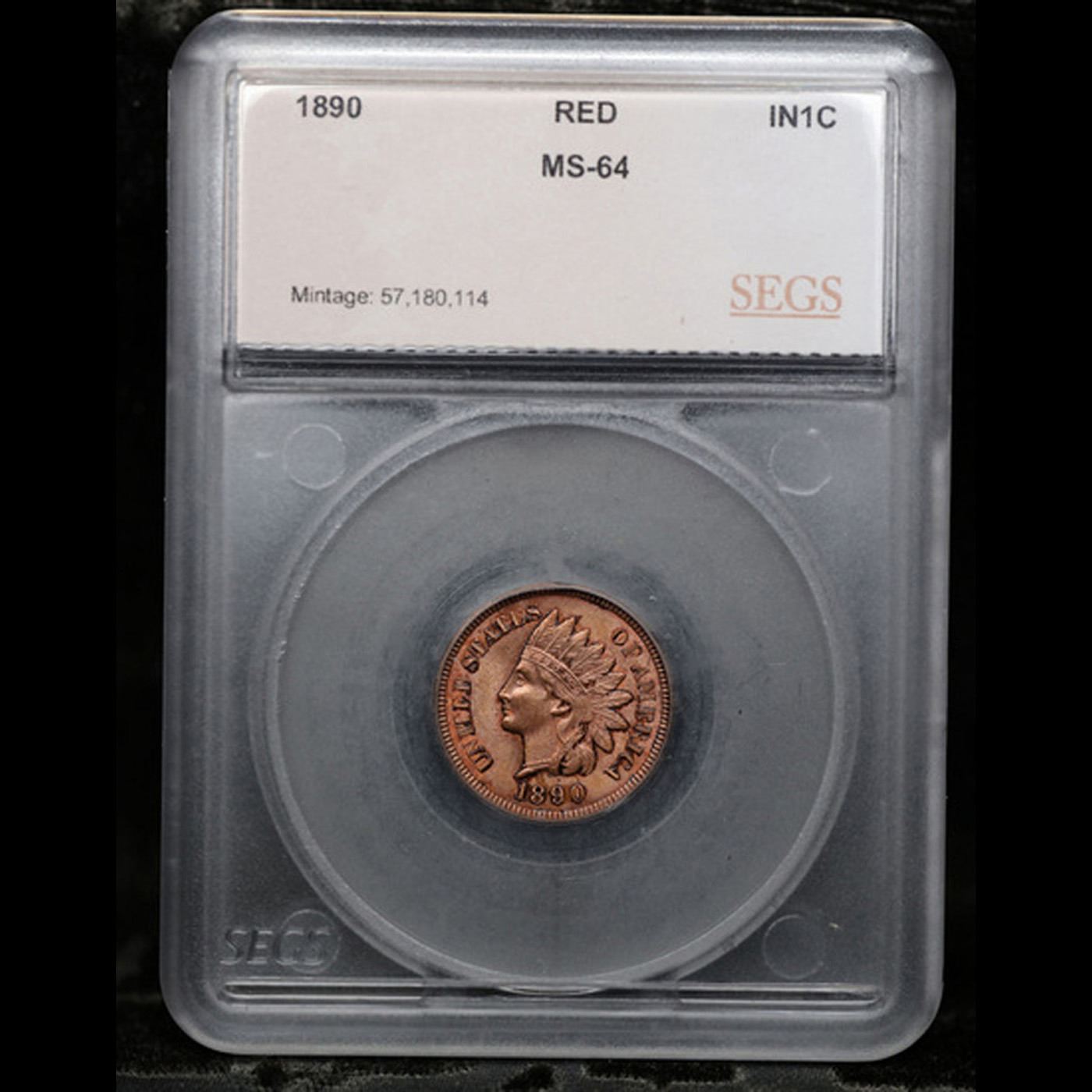1890 Indian Cent 1c Graded ms64 RD By SEGS. A Corey's Pick, Bid to Win Coin