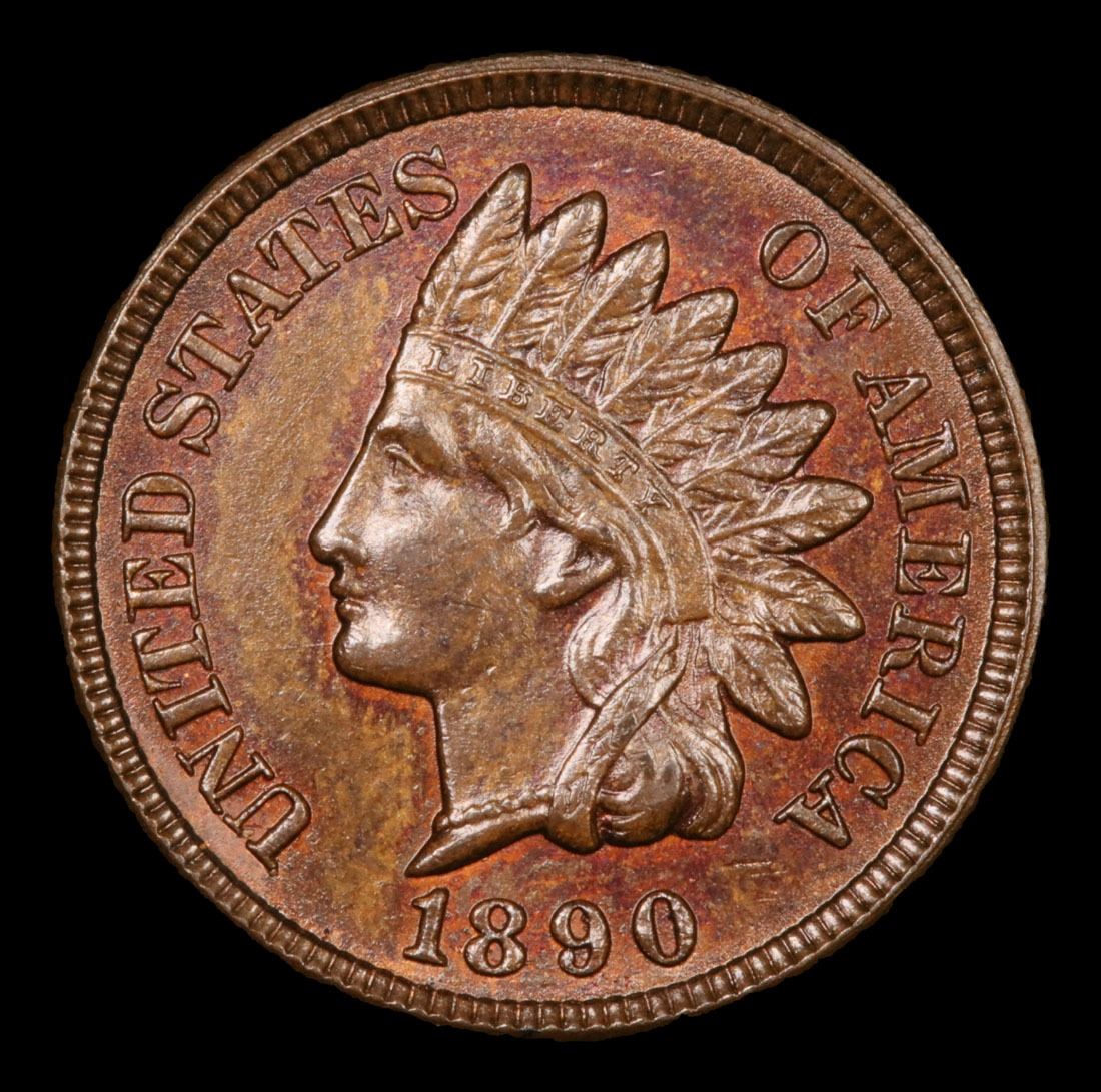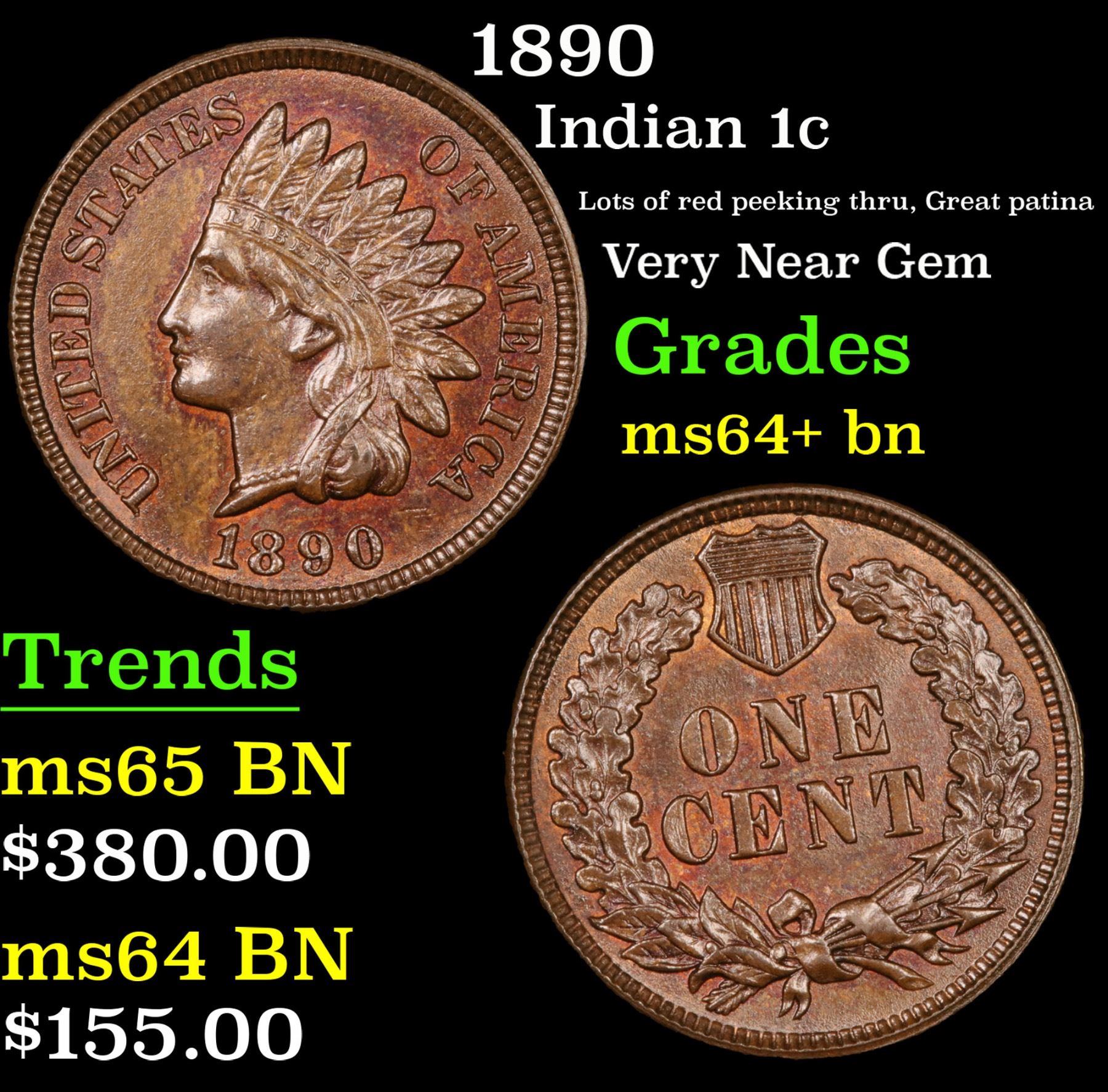 1890 Lots of red peeking thru, Great patina Very Near Gem Indian Cent 1c Grades Choice+ Unc BN.
