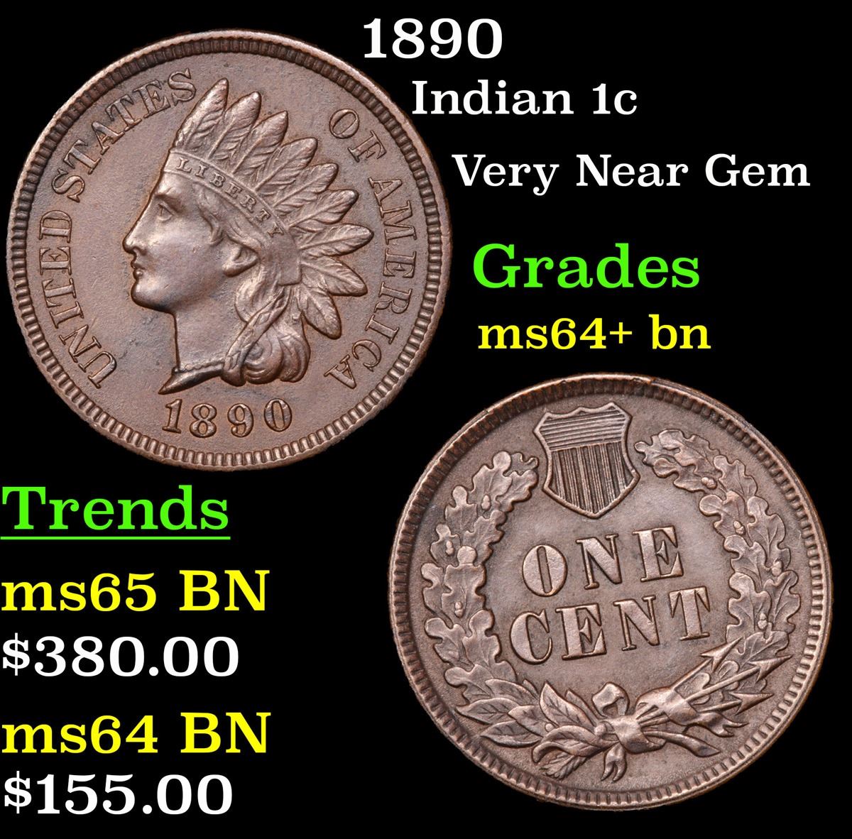 1890 . Very Near Gem Indian Cent 1c Grades Choice+ Unc BN.