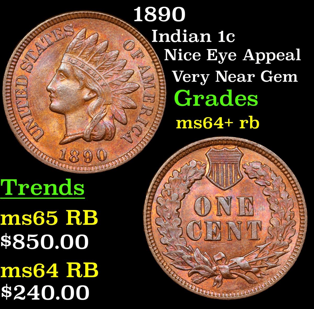 1890 Nice Eye Appeal Very Near Gem Indian Cent 1c Grades Choice+ Unc RB.