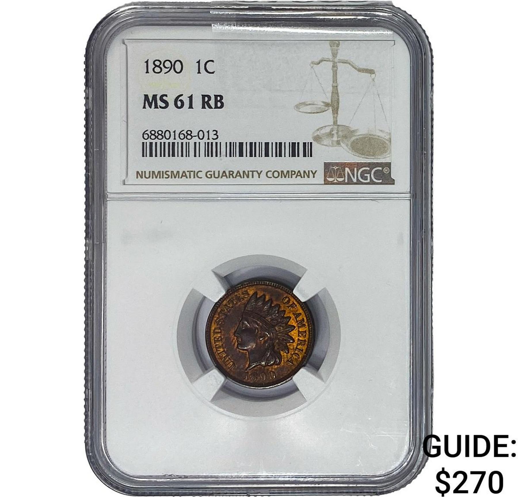 1890 Indian Head Cent NGC MS61 RB