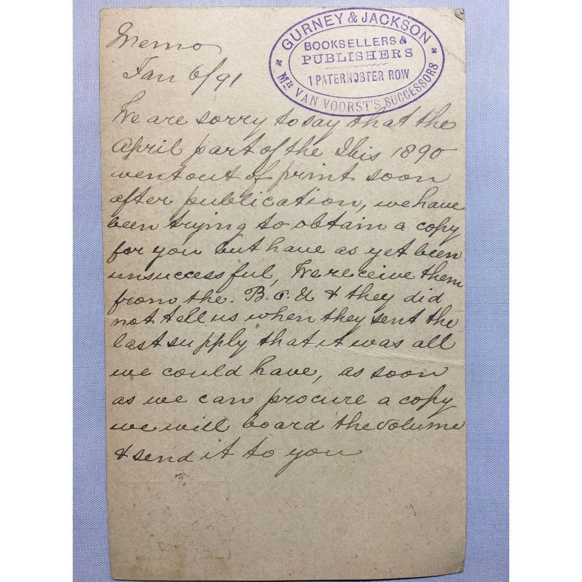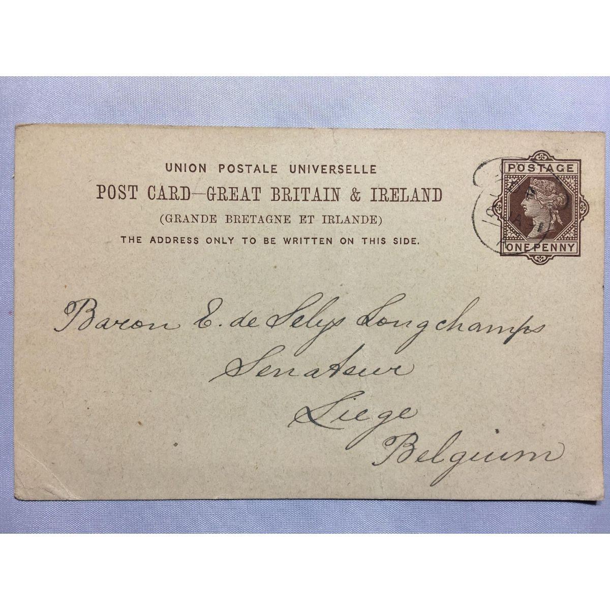 1890 London stamped original iron gall handwritten post card now in a protective sleeve with a British pennystamp.Â