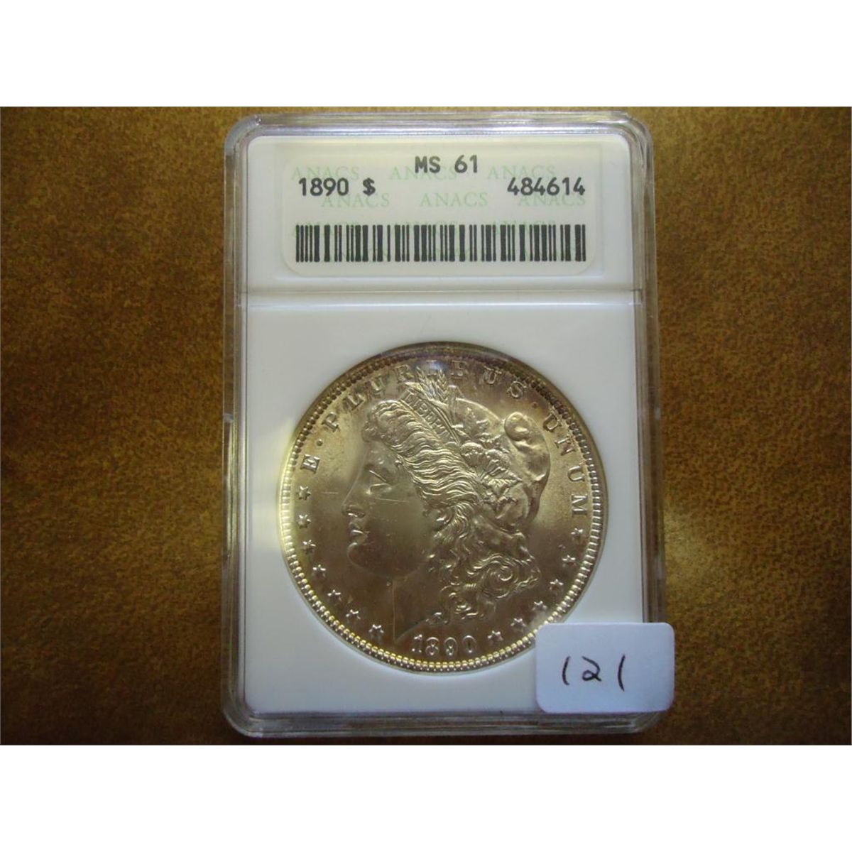 1890 MORGAN SILVER DOLLAR ANACS MS61